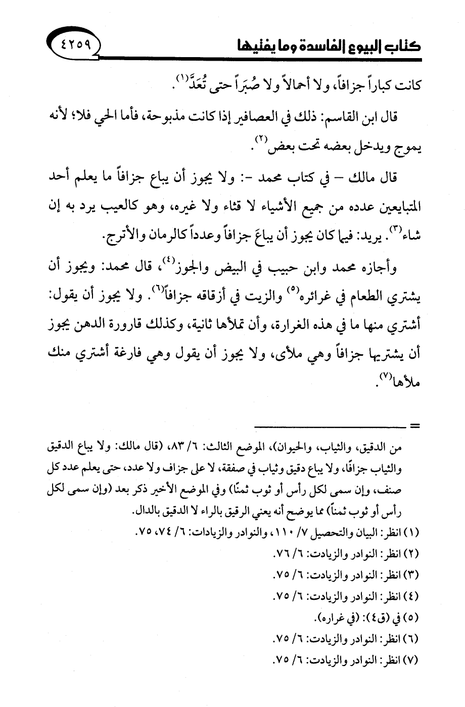(¬1) انظر: البيان والتحصيل 7/ 110، والنوادر والزيادات: 6/ 74، 75.