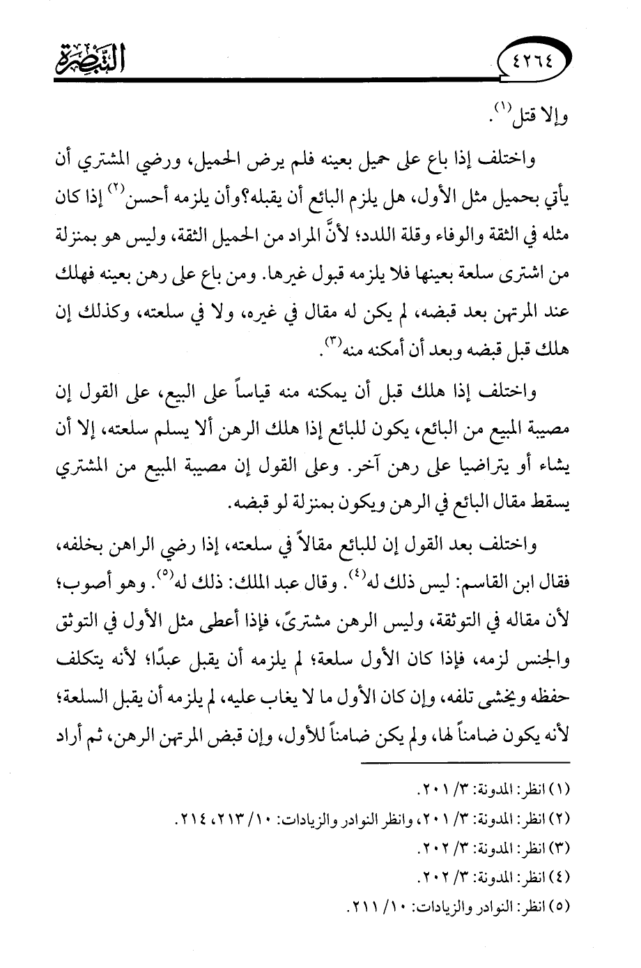 (¬5) انظر: النوادر والزيادات: 10/ 211.