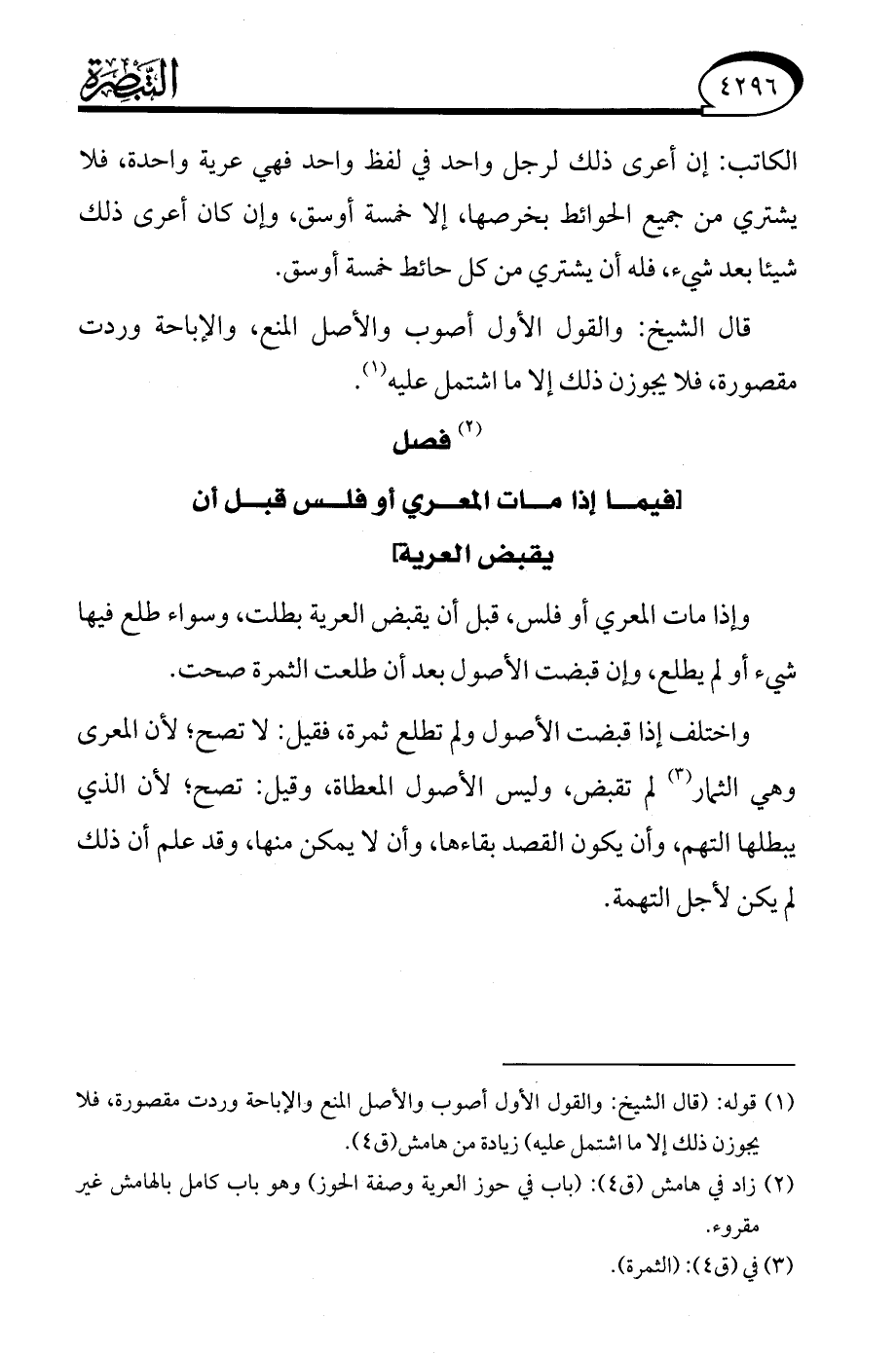 (¬2) زاد في هامش (ق 4): (باب في حوز العرية وصفة الحوز) وهو باب كامل بالهامش غير مقروء.