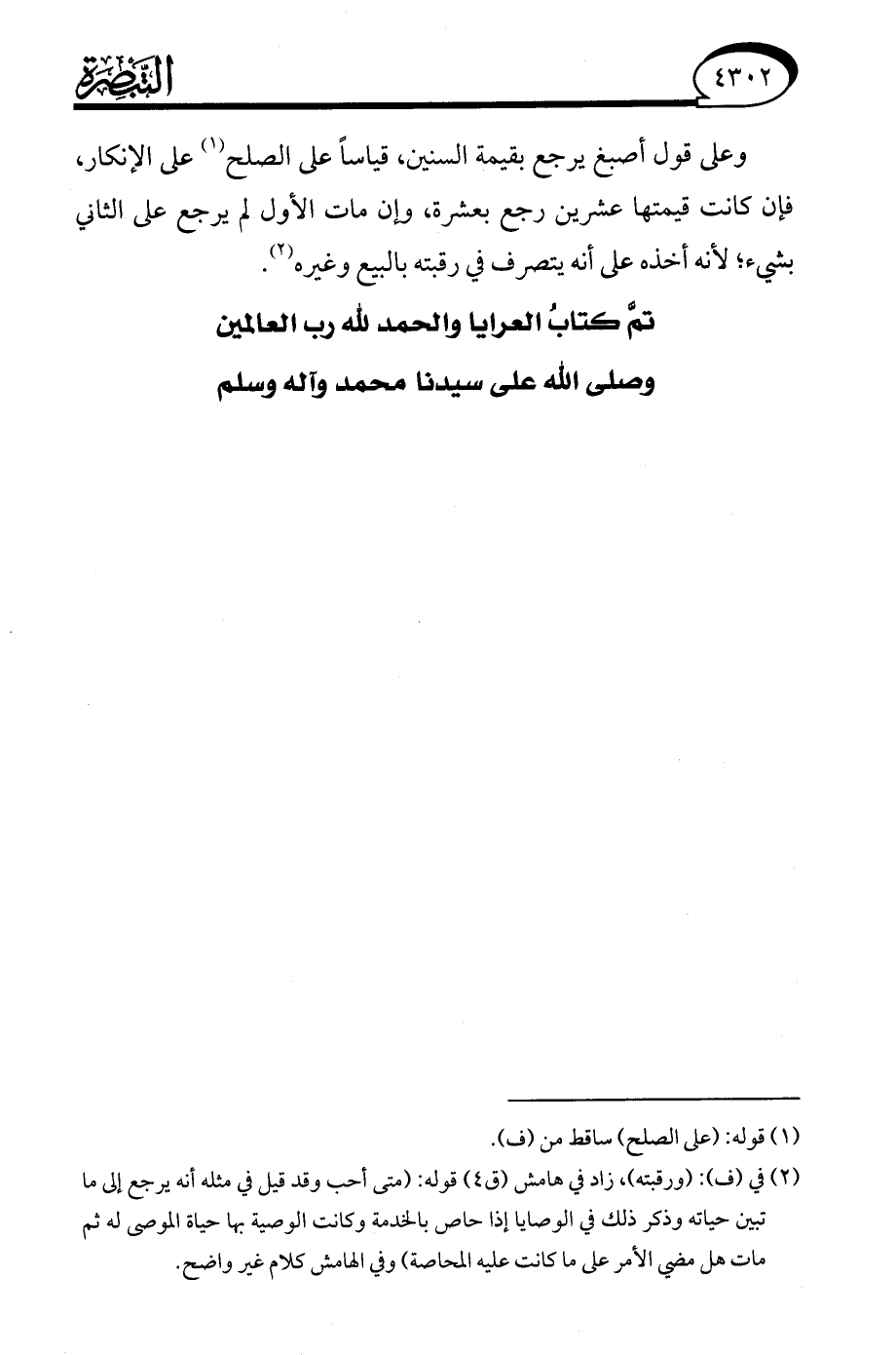 تمَّ كتابُ العرايا والحمد لله رب العالمين