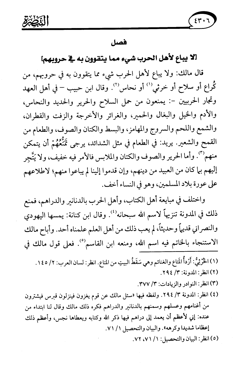 (¬4) انظر: المدونة 3/ 294. ولفظه فيها "سئل مالك عن قوم يغزون فينزلون قبرس فيشترون من أغنامهم وعسلهم وسمنهم بالدنانير والدراهم فكره ذلك مالك وقال لنا ابتداء من عنده: إني لأعظم أن يعمد إلى دراهم فيها ذكر الله وكتابه ويعطاها نجس، وأعظم ذلك إعظاما شديدا وكرهه". والبيان والتحصيل 1/ 71.
