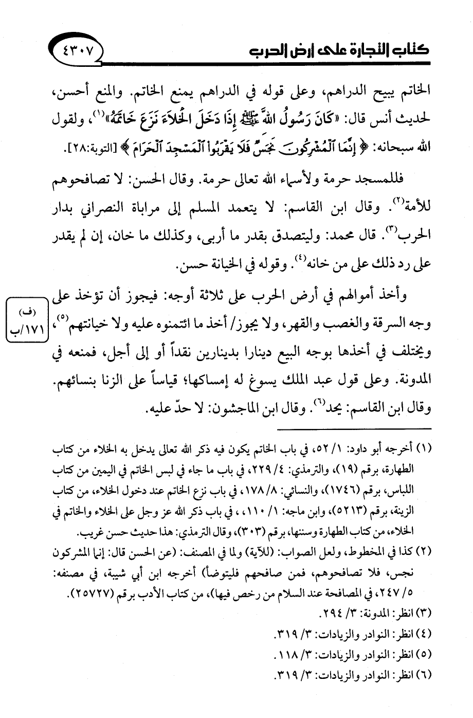 (¬6) انظر: النوادر والزيادات: 3/ 319.