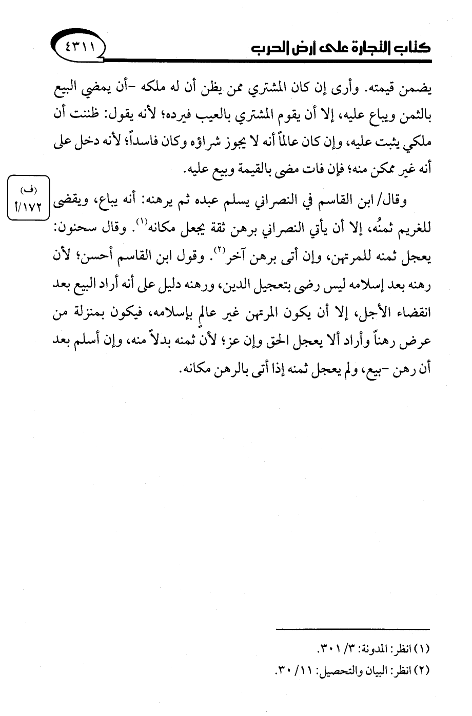 (¬2) انظر: البيان والتحصيل: 11/ 30.