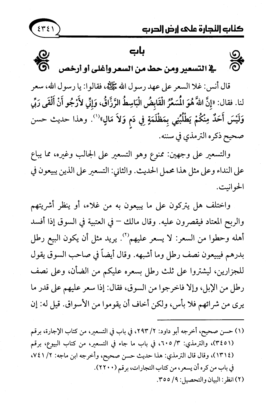باب في التسعير ومن حط السعر وأغلى أو أرخص