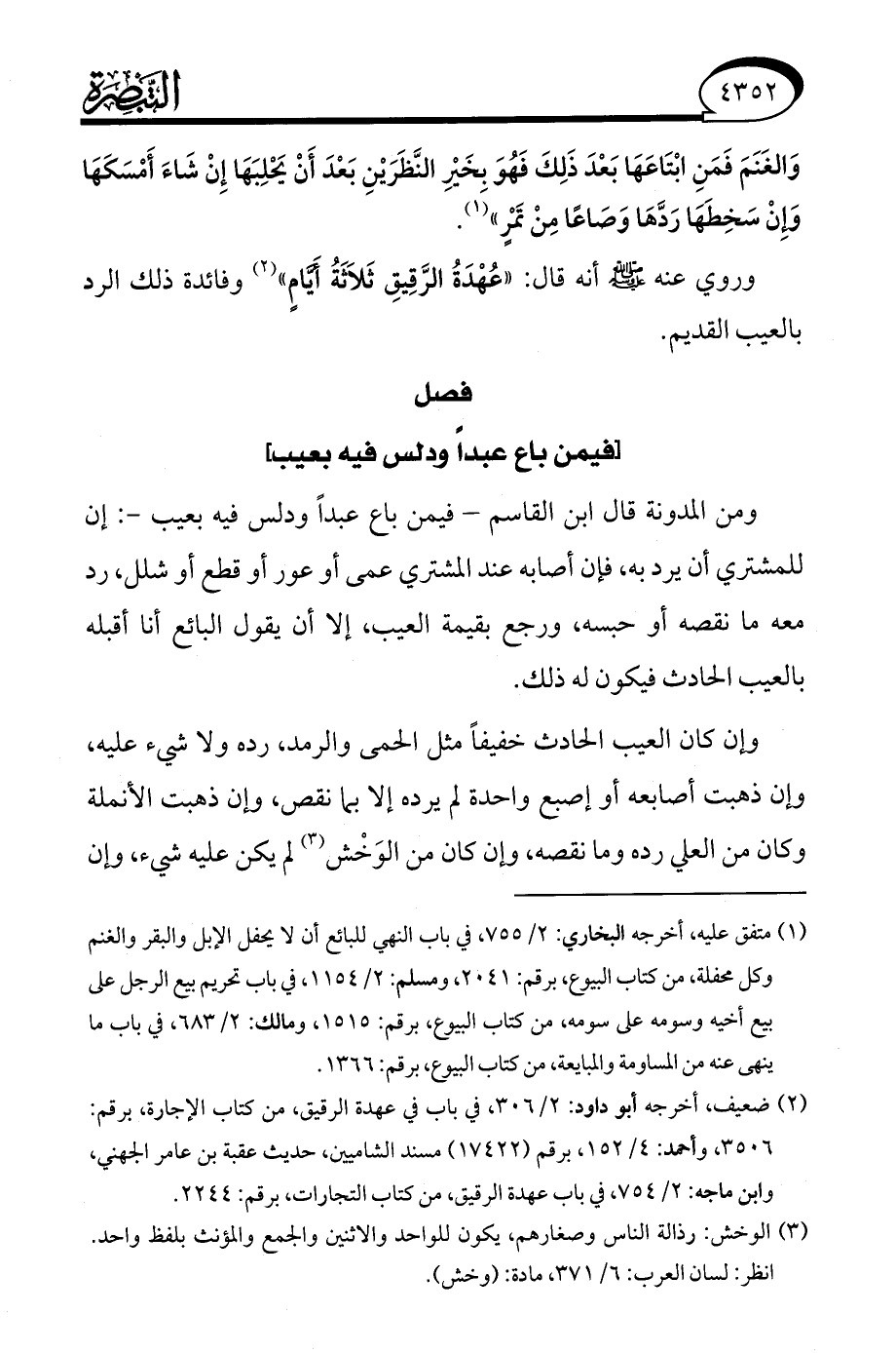 وروي عنه - صلى الله عليه وسلم - أنه قال: "عُهْدَةُ الرَّقِيقِ ثَلاَثَةُ أَيَّامٍ" (¬2) وفائدة ذلك الرد بالعيب القديم.