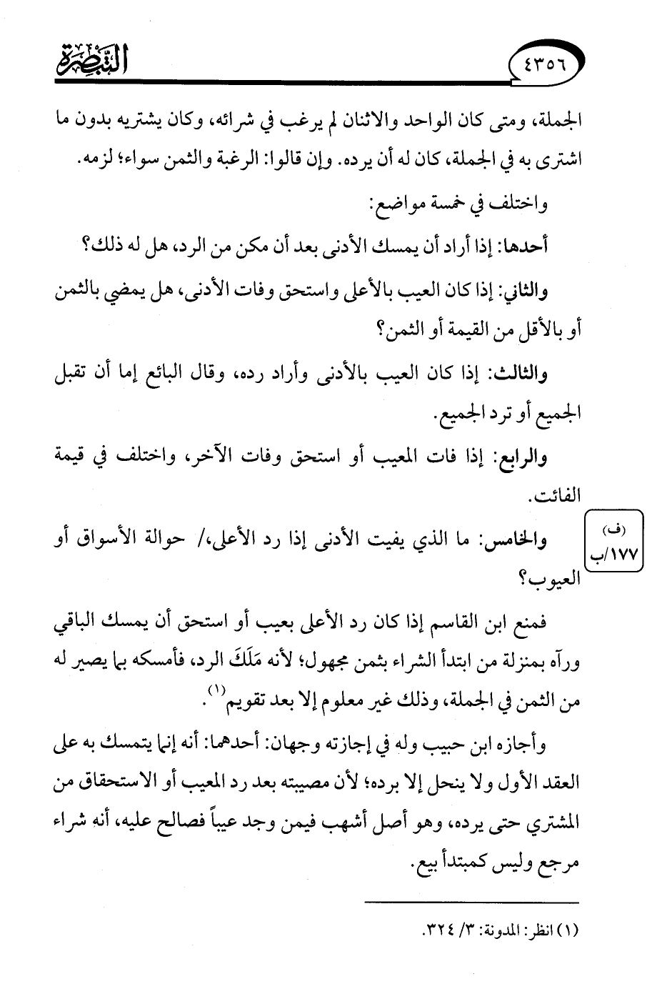 (¬1) انظر: المدونة: 3/ 324.