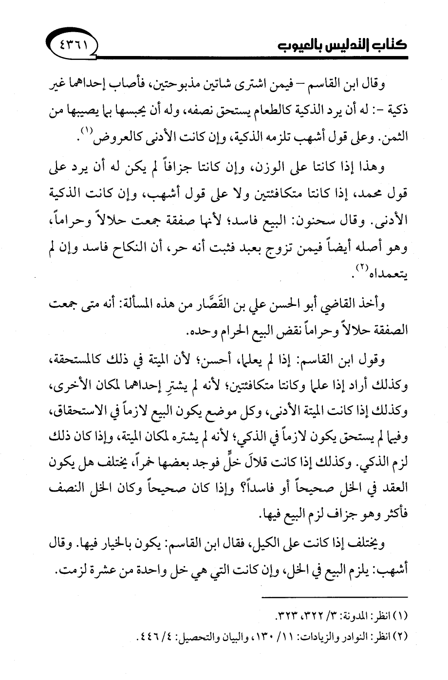 (¬2) انظر: النوادر والزيادات: 11/ 130، والبيان والتحصيل: 4/ 446.