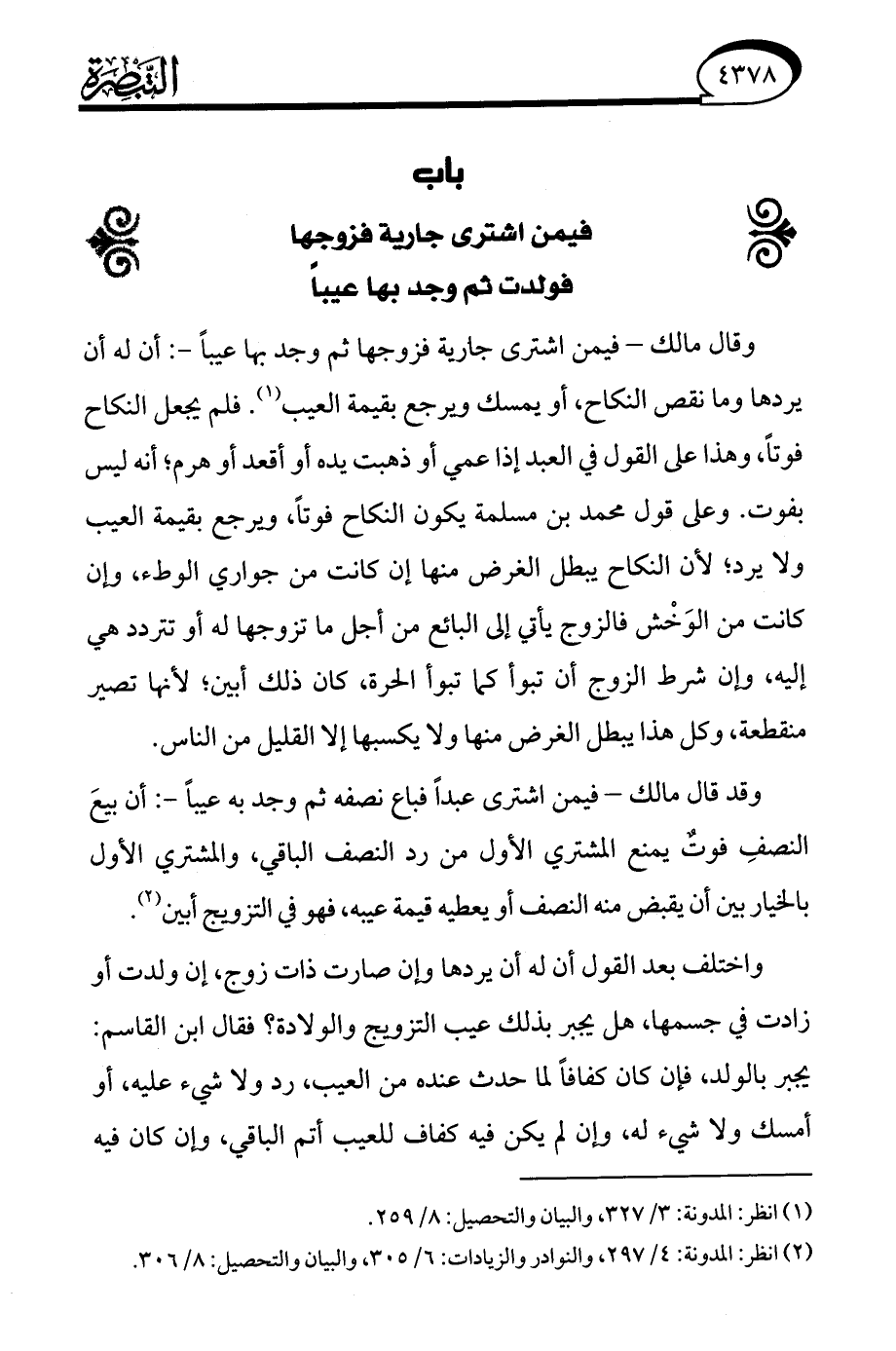 (¬2) انظر: المدونة: 4/ 297، والنوادر والزيادات: 6/ 305، والبيان والتحصيل: 8/ 306.