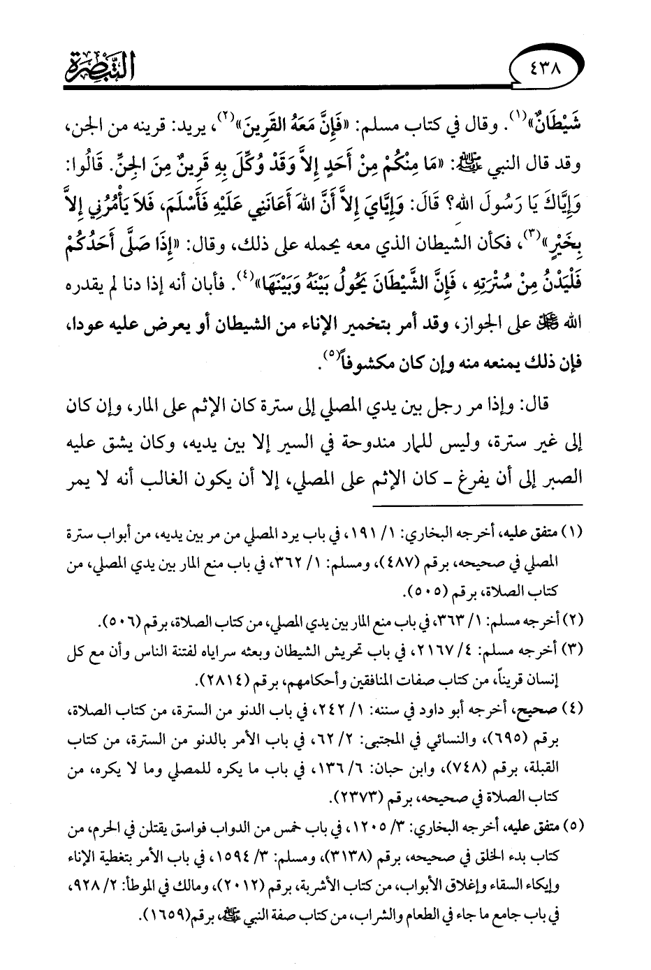 (¬2) أخرجه مسلم: 1/ 363، في باب منع المار بين يدي المصلي، من كتاب الصلاة، برقم (506).