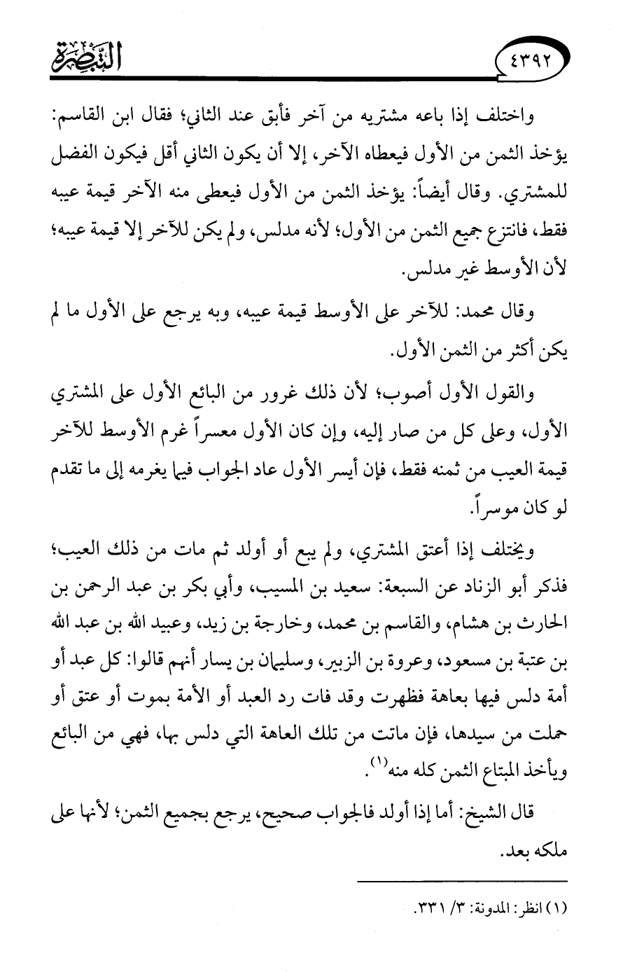 (¬1) انظر: المدونة: 3/ 331.