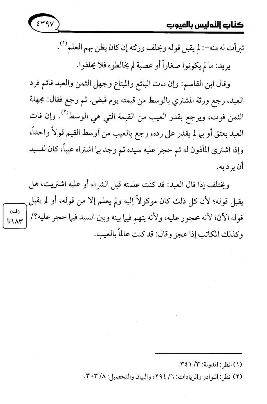 (¬2) انظر: النوادر والزيادات: 6/ 294، والبيان والتحصيل: 8/ 303.