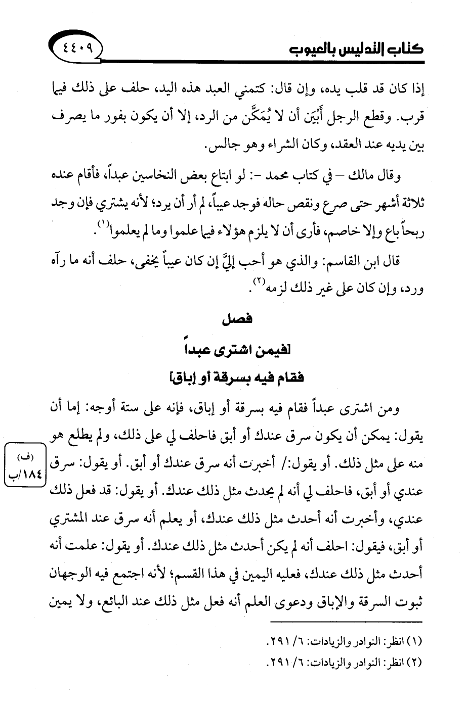 (¬2) انظر: النوادر والزيادات: 6/ 291.