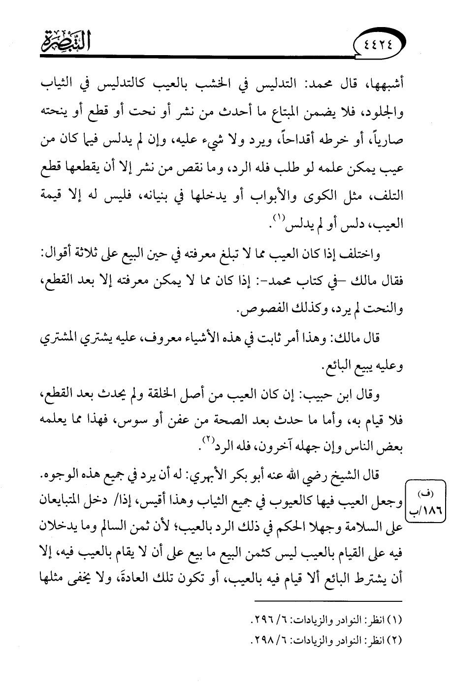 (¬2) انظر: النوادر والزيادات: 6/ 298.