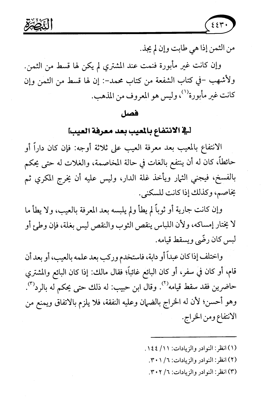 (¬3) انظر: النو ادر والزيادات: 6/ 302.