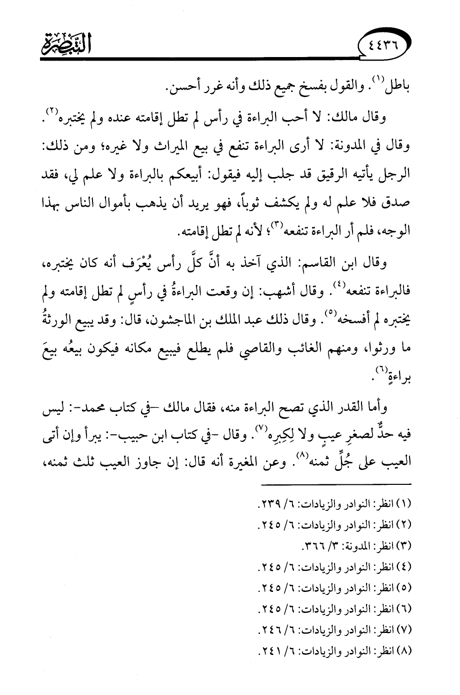 (¬8) انظر: النوادر والزيادات: 6/ 241.