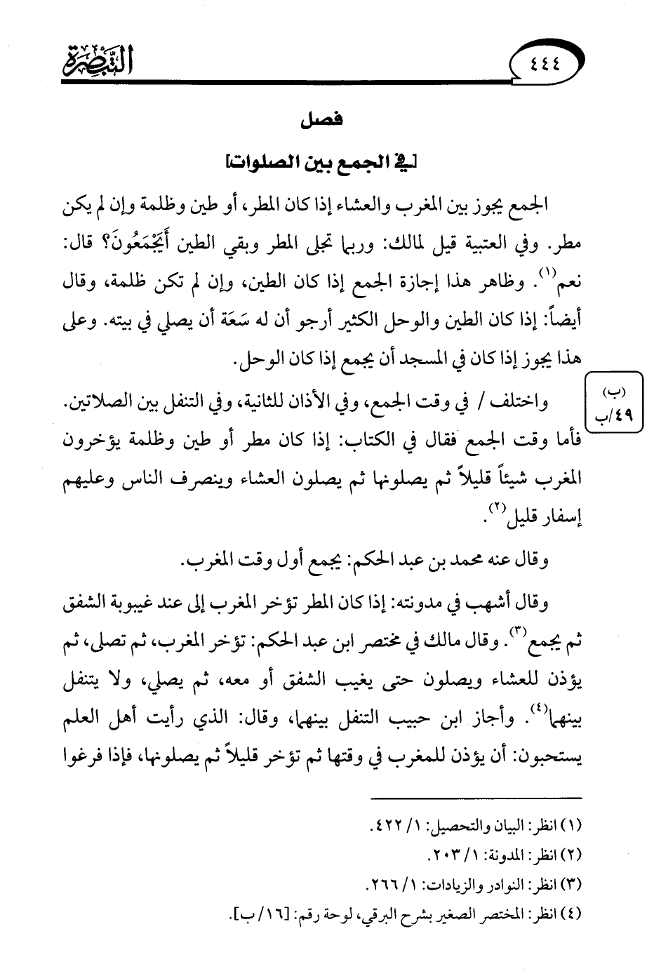 (¬4) انظر: المختصر الصغير بشرح البرقي، لوحة رقم: [16 / ب].