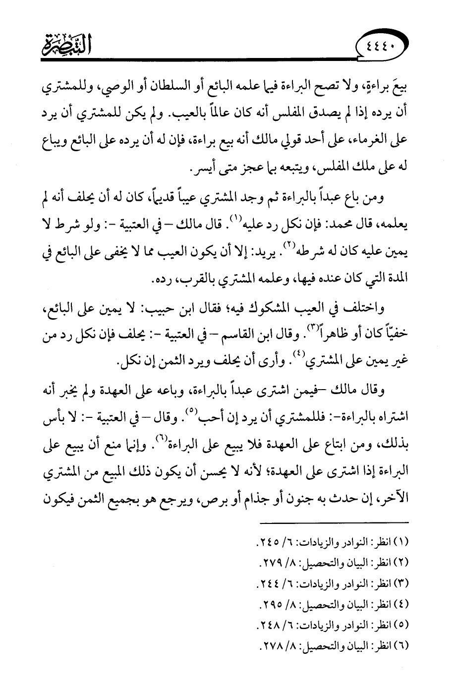 (¬6) انظر: البيان والتحصيل: 8/ 278.