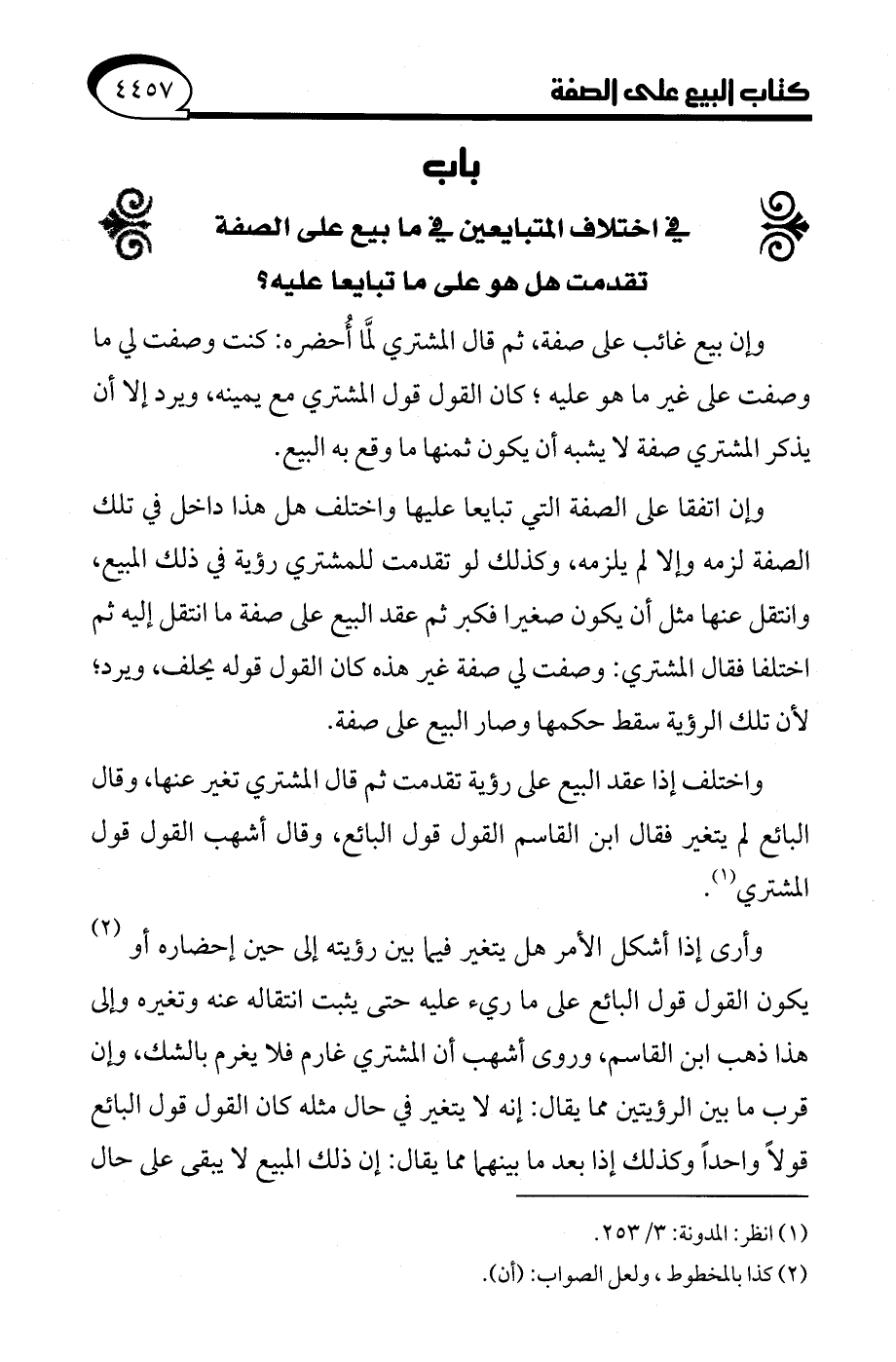 باب في اختلاف المتبايعين في ما بيع على الصفة تقدمت هل هو على ما تبايعا عليه؟