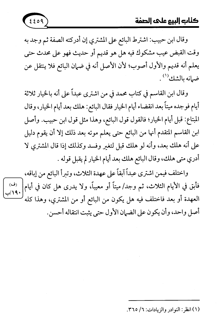 (¬1) انظر: النوادر والزيادات: 6/ 365.