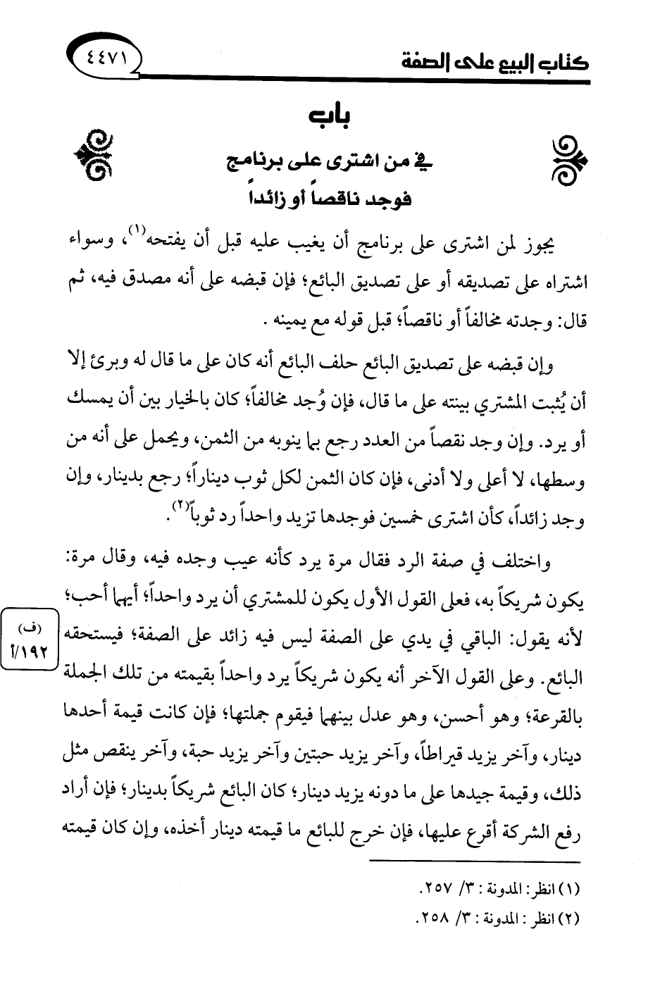 باب في من اشترى على برنامج فوجد ناقصًا أو زائدًا