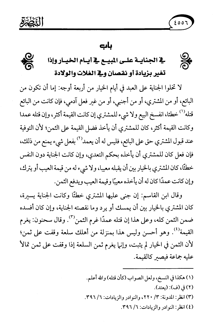 (¬4) انظر: النوادر والزيادات: 6/ 396.