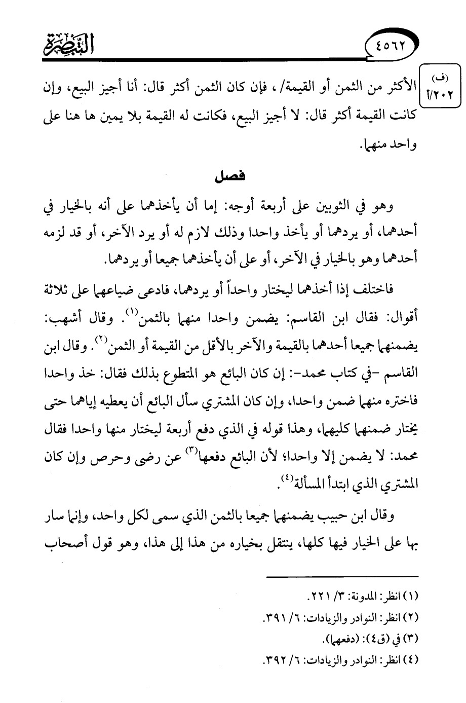 (¬4) انظر: النوادر والزيادات: 6/ 392.