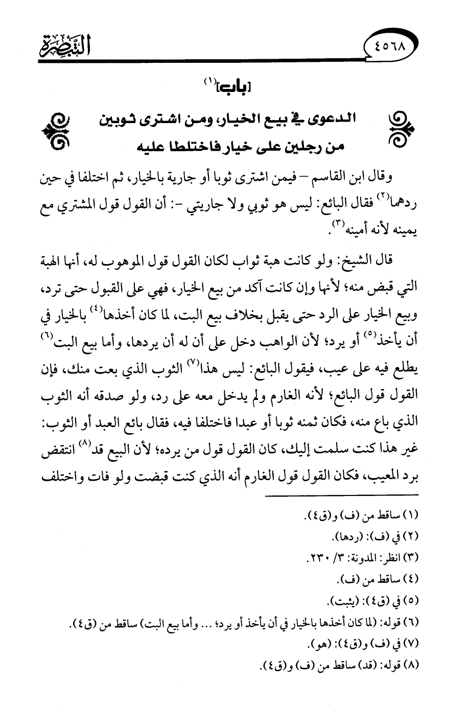 (¬6) قوله: (لما كان أخذها بالخيار في أن ياخذ أو يرد؛. . . وأما بيع البت) ساقط من (ق 4).