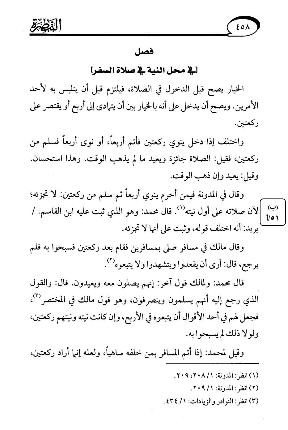(¬3) انظر: النوادر والزيادات: 1/ 434.