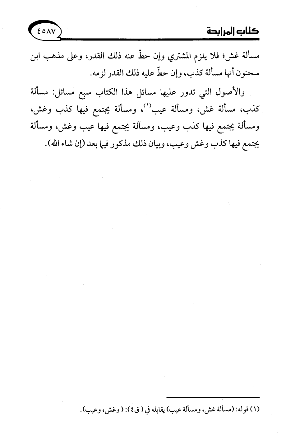 والأصول التي تدور عليها مسائل هذا الكتاب سبع مسائل: مسألة كذب، مسألة غش، ومسألة عيب (¬1)، ومسألة يجتمع فيها كذب وغش، ومسألة يجتمع فيها كذب وعيب، ومسألة يجتمع فيها عيب وغش، ومسألة يجتمع فيها كذب وغش وعيب، وبيان ذلك مذكور فيما بعد (إن شاء الله).