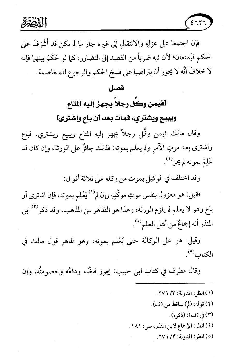وقد اختلف في الوكيل يموت من وكله على ثلاثة أقوال: