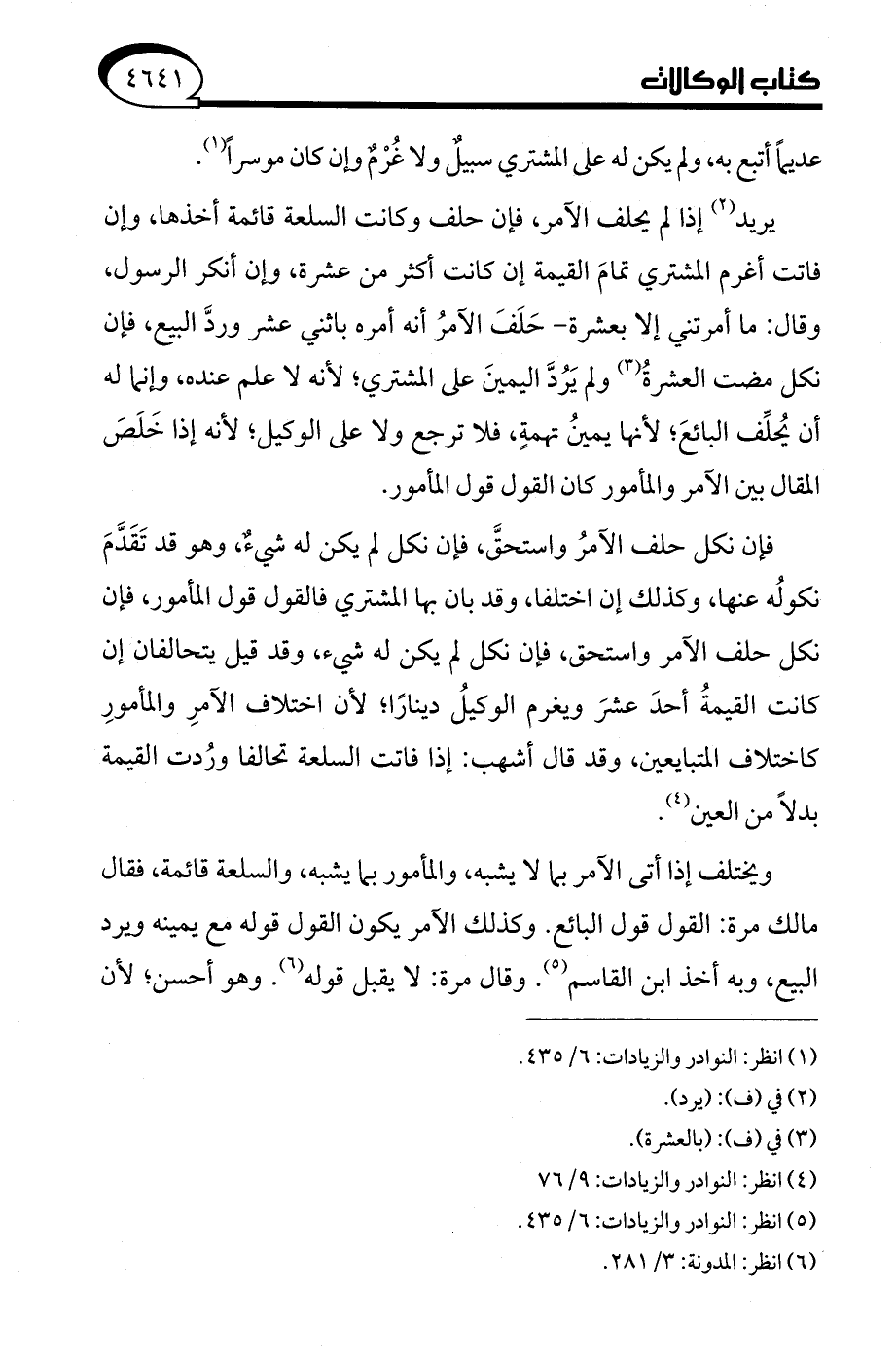 (¬4) انظر: النوادر والزيادات: 9/ 76.