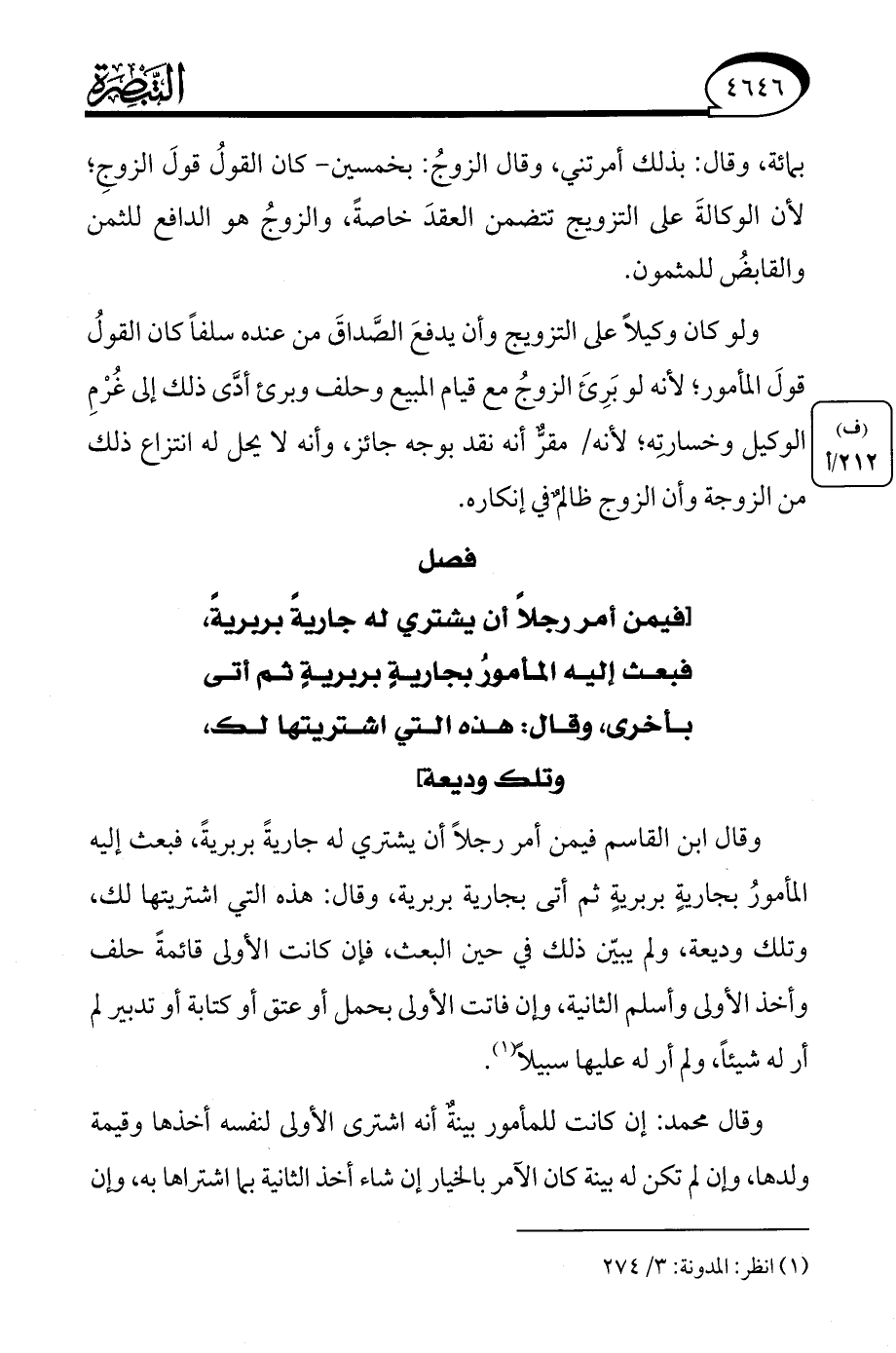 (¬1) انظر: المدونة: 3/ 274