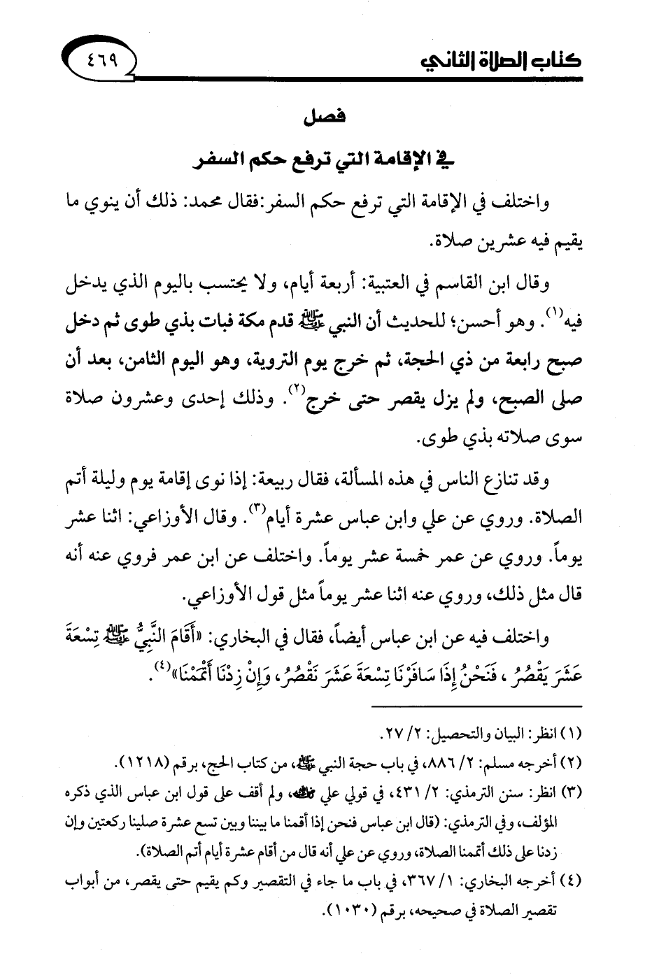(¬4) أخرجه البخاري: 1/ 367، في باب ما جاء في التقصير وكم يقيم حتى يقصر، من أبواب تقصير الصلاة في صحيحه، برقم (1030).