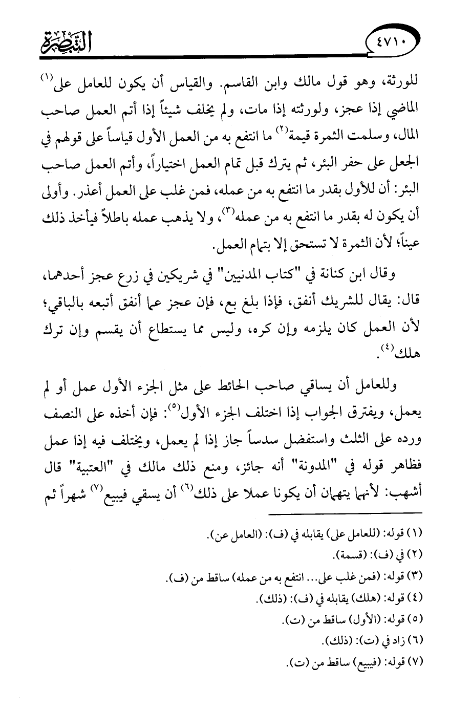 للورثة، وهو قول مالك وابن القاسم. والقياس أن يكون للعامل على (¬1) الماضي إذا عجز، ولورثته إذا مات، ولم يخلف شيئًا إذا أتم العمل صاحب المال، وسلمت الثمرة قيمة (¬2) ما انتفع به من العمل الأول قياسًا على قولهم في الجعل على حفر البئر، ثم يترك قبل تمام العمل اختيارًا، وأتم العمل صاحب البئر: أن للأول بقدر ما انتفع به من عمله، فمن غلب على العمل أعذر. وأولى أن يكون له بقدر ما انتفع به من عمله (¬3)، ولا يذهب عمله باطلًا فيأخذ ذلك عينًا؛ لأن الثمرة لا تستحق إلا بتمام العمل.