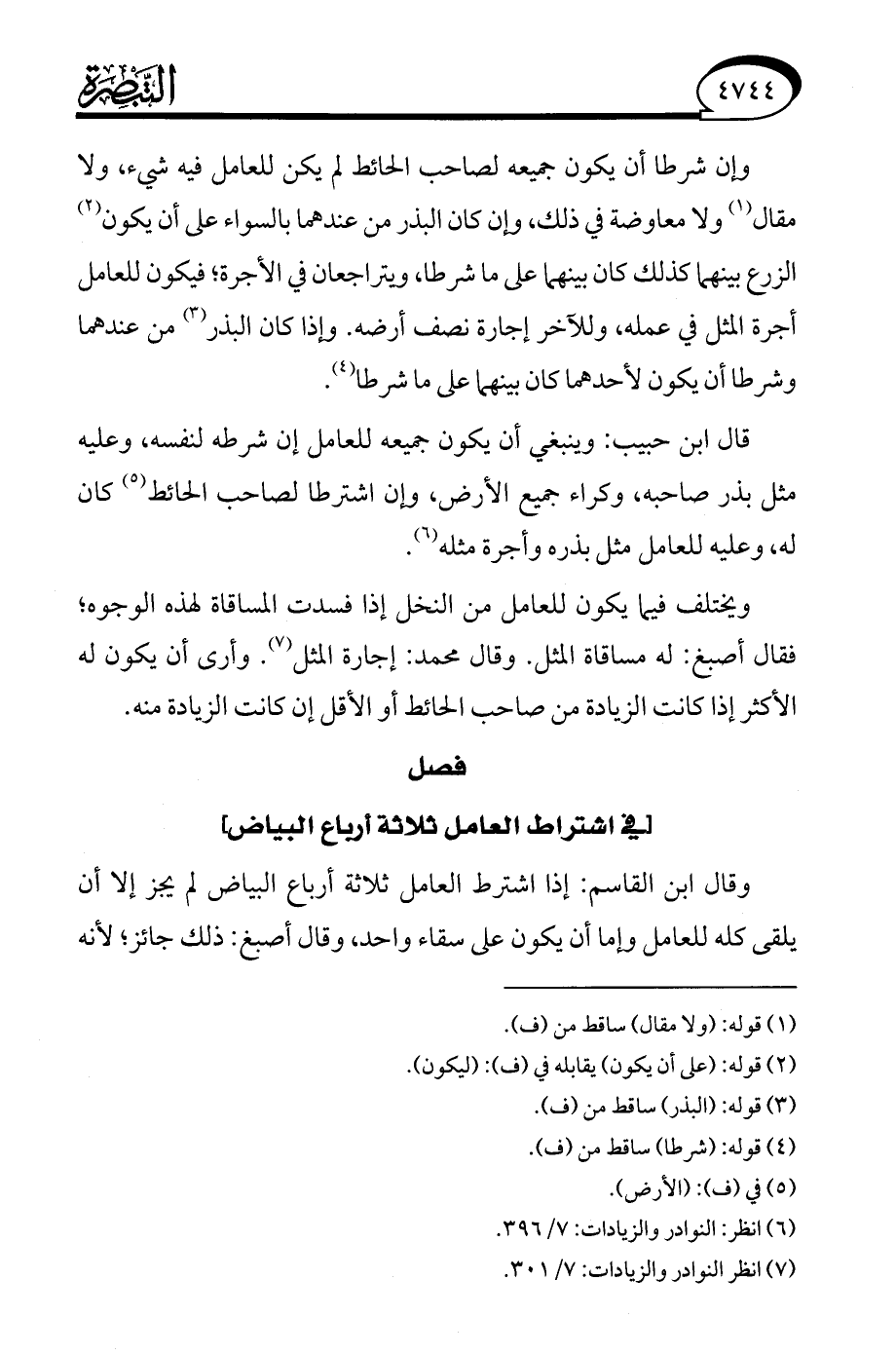 (¬6) انظر: النوادر والزيادات: 7/ 396.