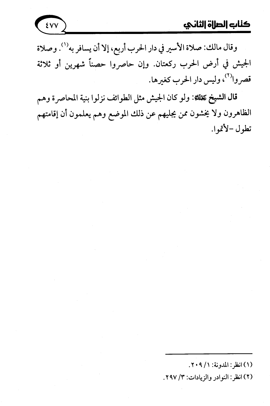 وقال مالك: صلاة الأسير في دار الحرب أربع، إلا أن يسافر به (¬1). وصلاة الجيش في أرض الحرب ركعتان. وإن حاصروا حصنًا شهرين أو ثلاثة قصروا (¬2)، وليس دار الحرب كغيرها.