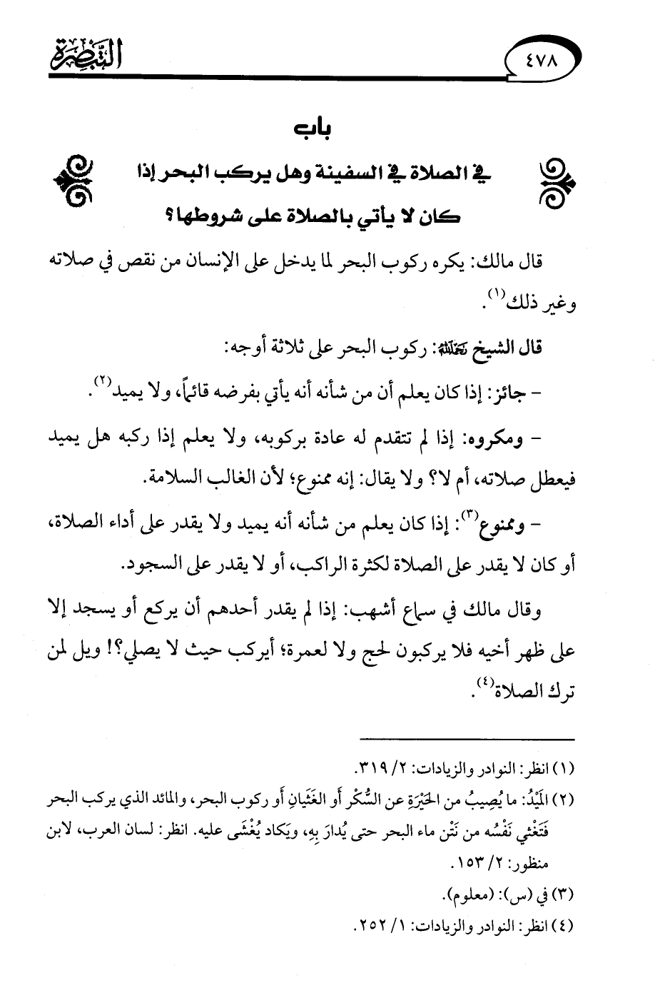 باب في الصلاة في السفينة وهل يركب البحر إذا كان لا يأتي بالصلاة على شروطها؟