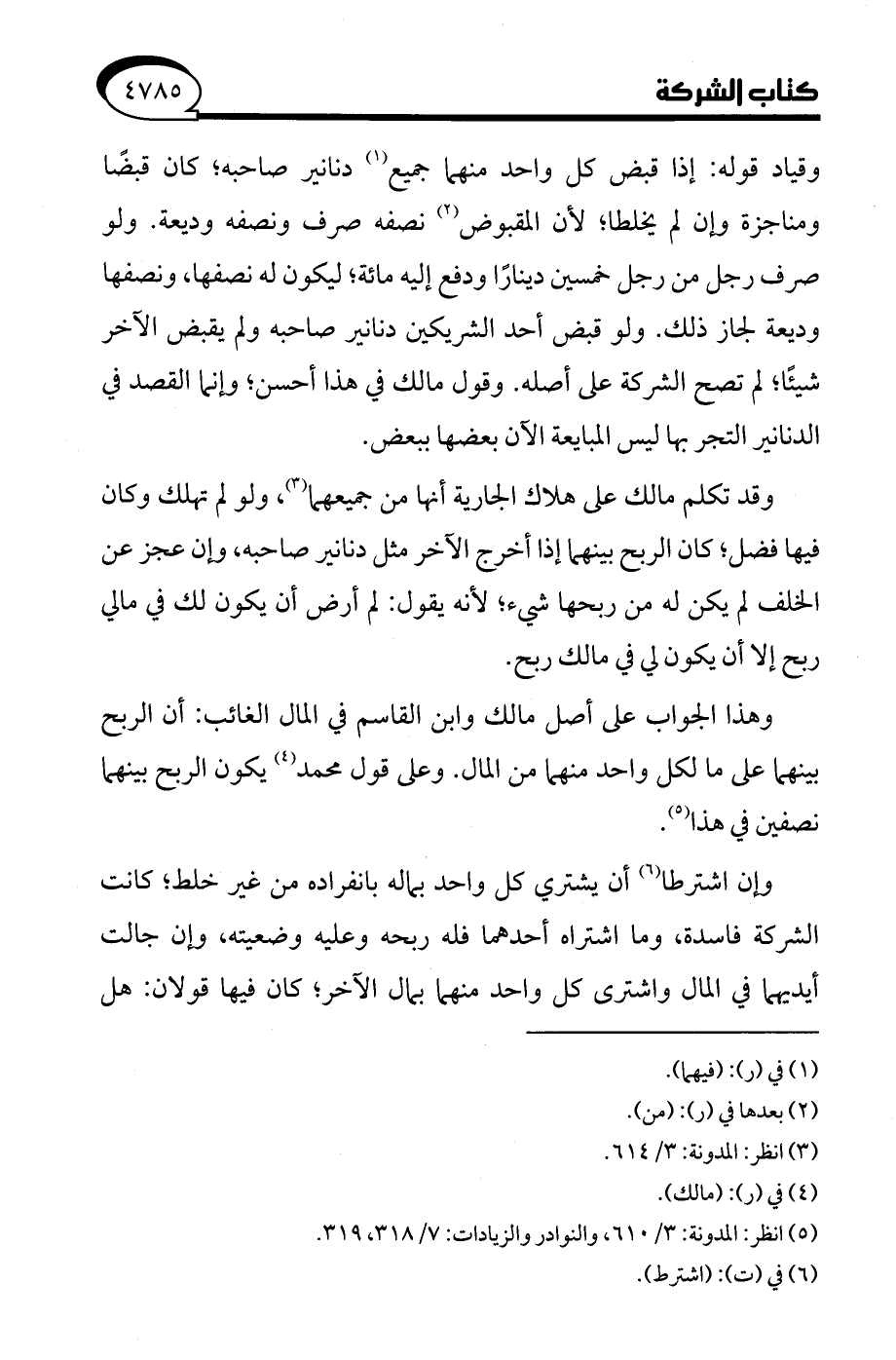 (¬5) انظر: المدونة: 3/ 610، والنوادر والزيادات: 7/ 318، 319.