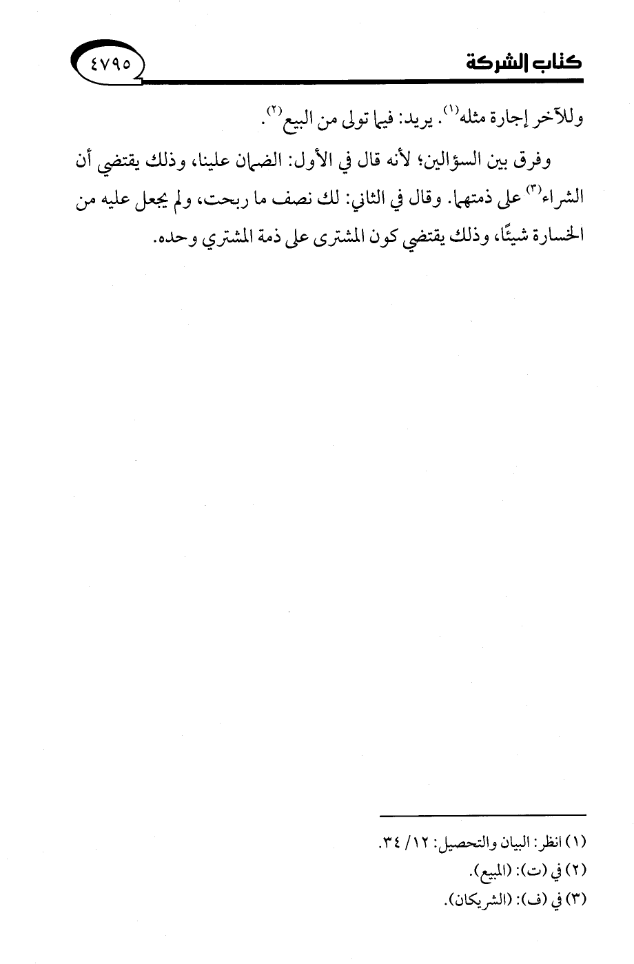 (¬1) انظر: البيان والتحصيل: 12/ 34.