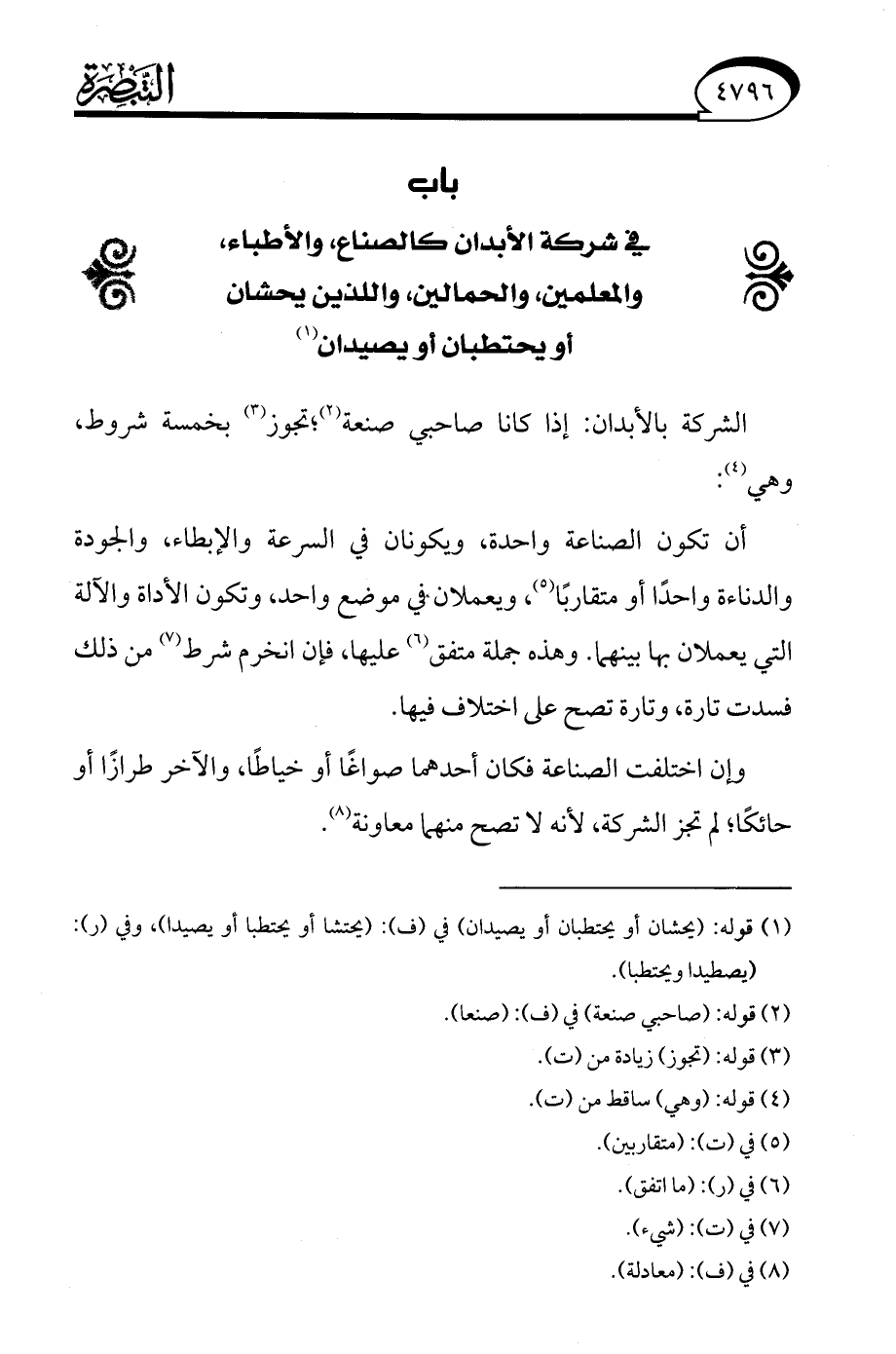 باب في شركة الأبدان كالصناع، والأطباء، والمعلمين، والحمالين، واللذين يحشان أو يحتطبان أو يصيدان (¬1)