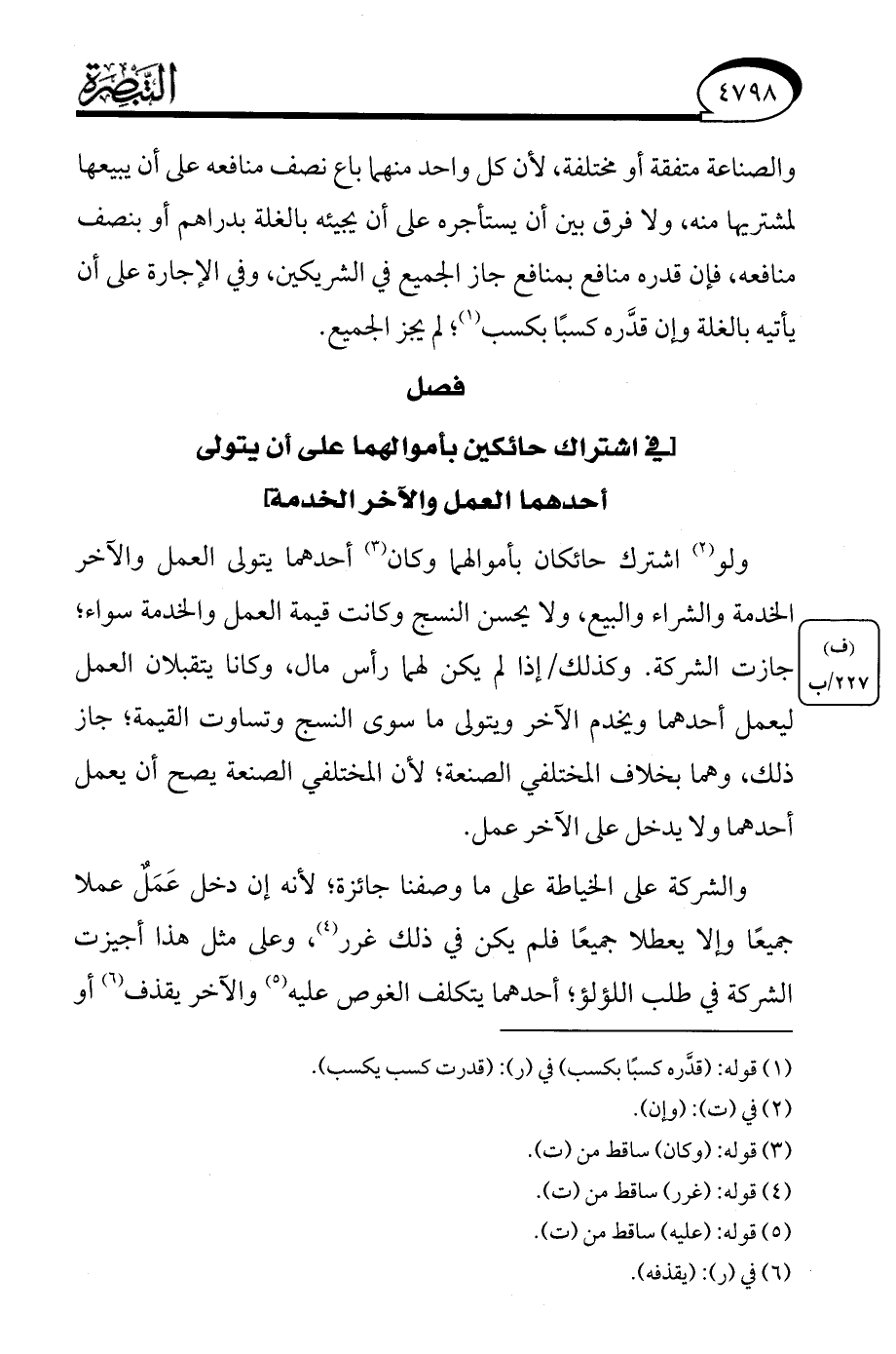 والشركة على الخياطة على ما وصفنا جائزة؛ لأنه إن دخل عَمَلٌ عملا جميعًا وإلا يعطلا جميعًا فلم يكن في ذلك غرر (¬4)، وعلى مثل هذا أجيزت الشركة في طلب اللؤلؤ، أحدهما يتكلف الغوص عليه (¬5) والآخر يقذف (¬6) أو