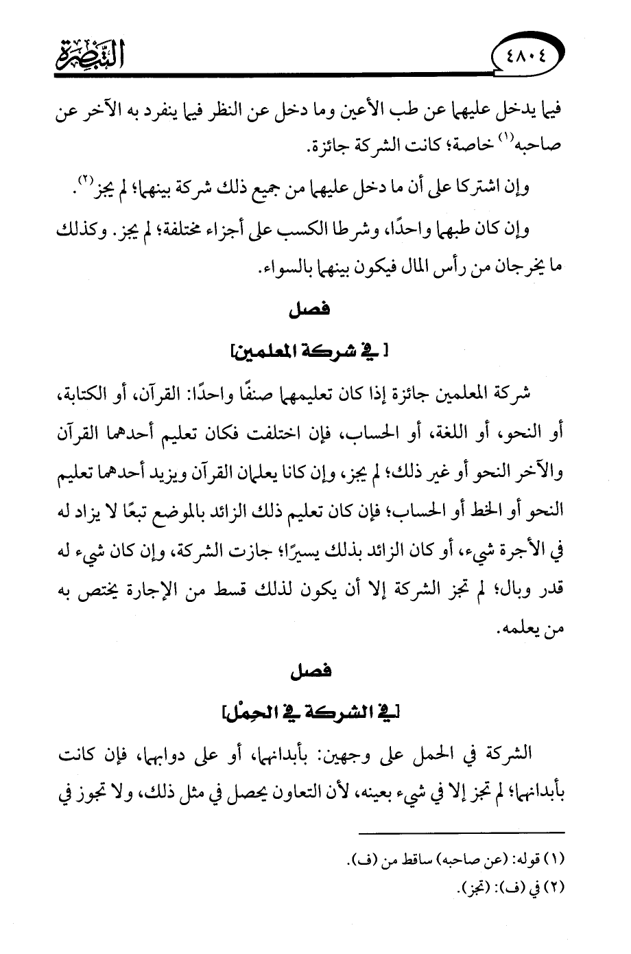 فصل [في شركة المعلمين]