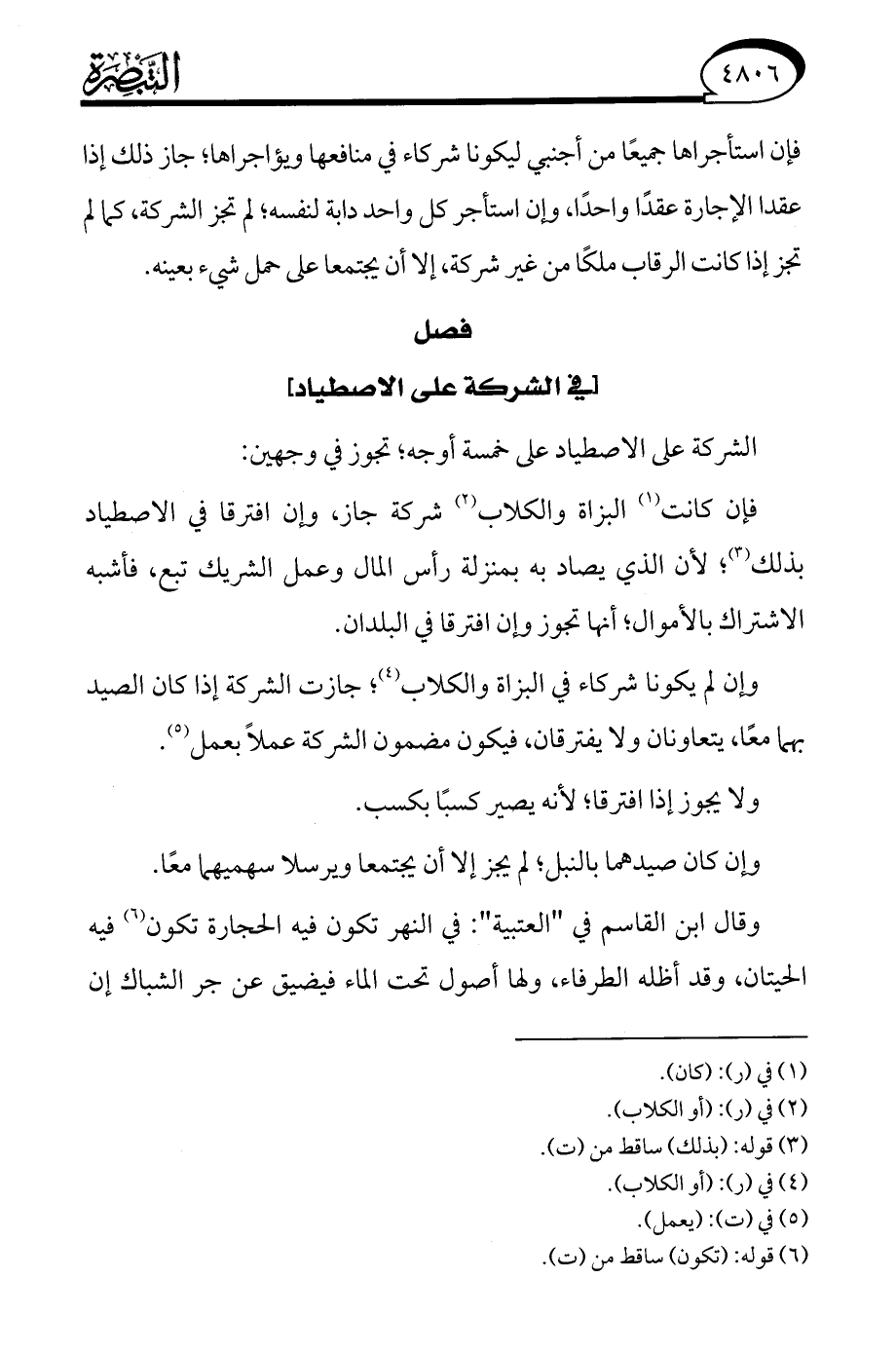 الشركة على الاصطياد على خمسة أوجه، تجوز في وجهين: