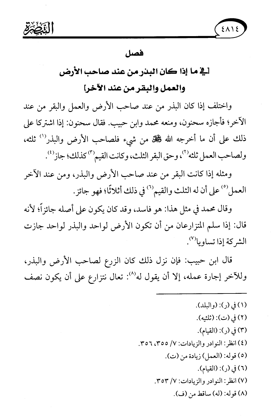 (¬7) انظر: النوادر والزيادات: 7/ 353.