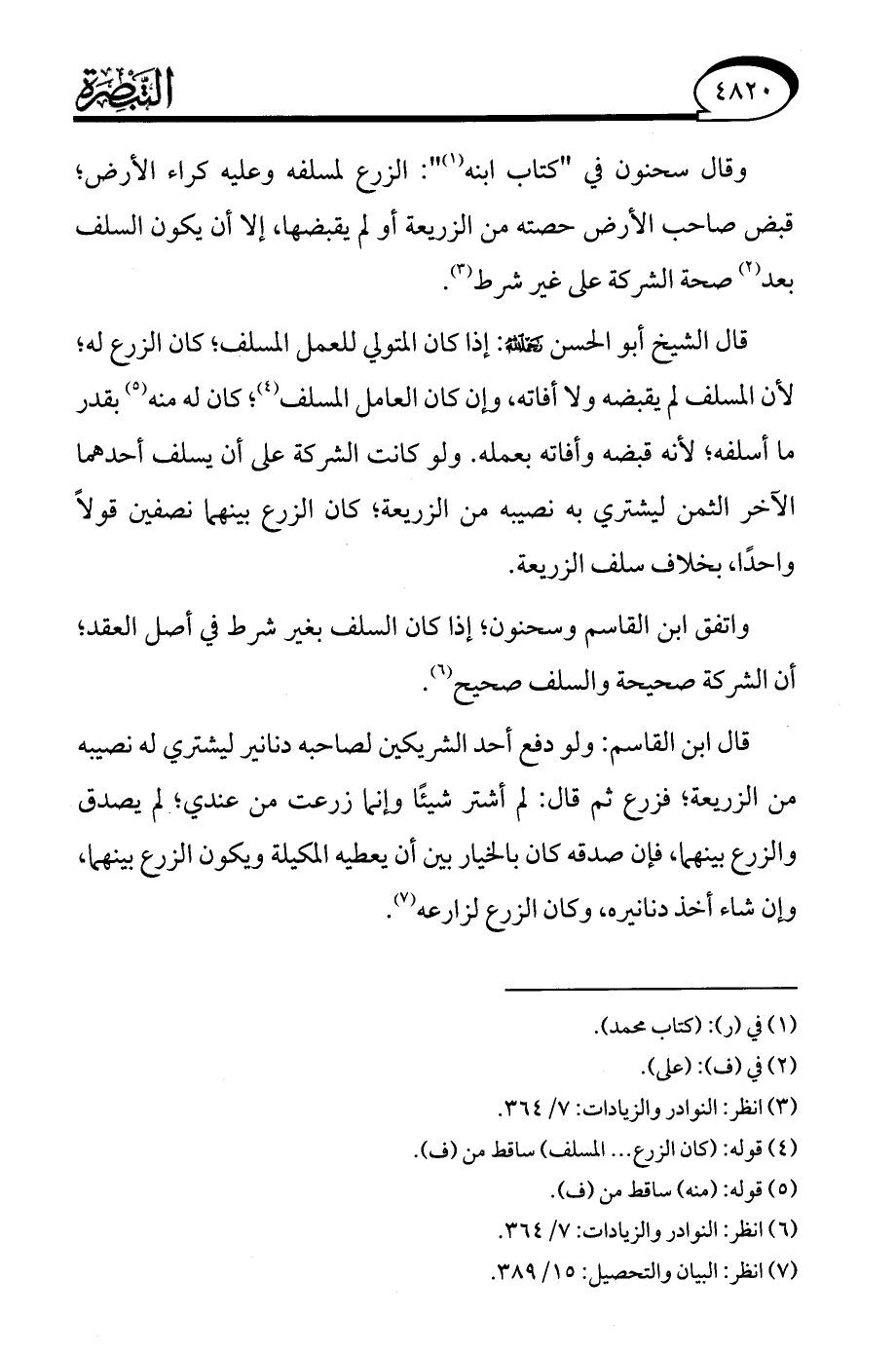 (¬6) انظر: النوادر والزيادات: 7/ 364.