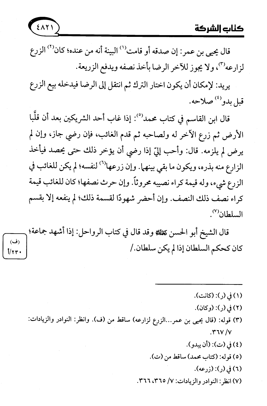 (¬3) قوله: (قال يحيى بن عمر. . . الزرع لزارعه) ساقط من (ف). وانظر: النوادر والزيادات: 7/ 367.