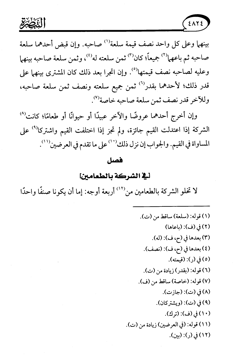 لا تخلو الشركة بالطعامين من (¬12) أربعة أوجه: إما أن يكونا صنفًا واحدًا