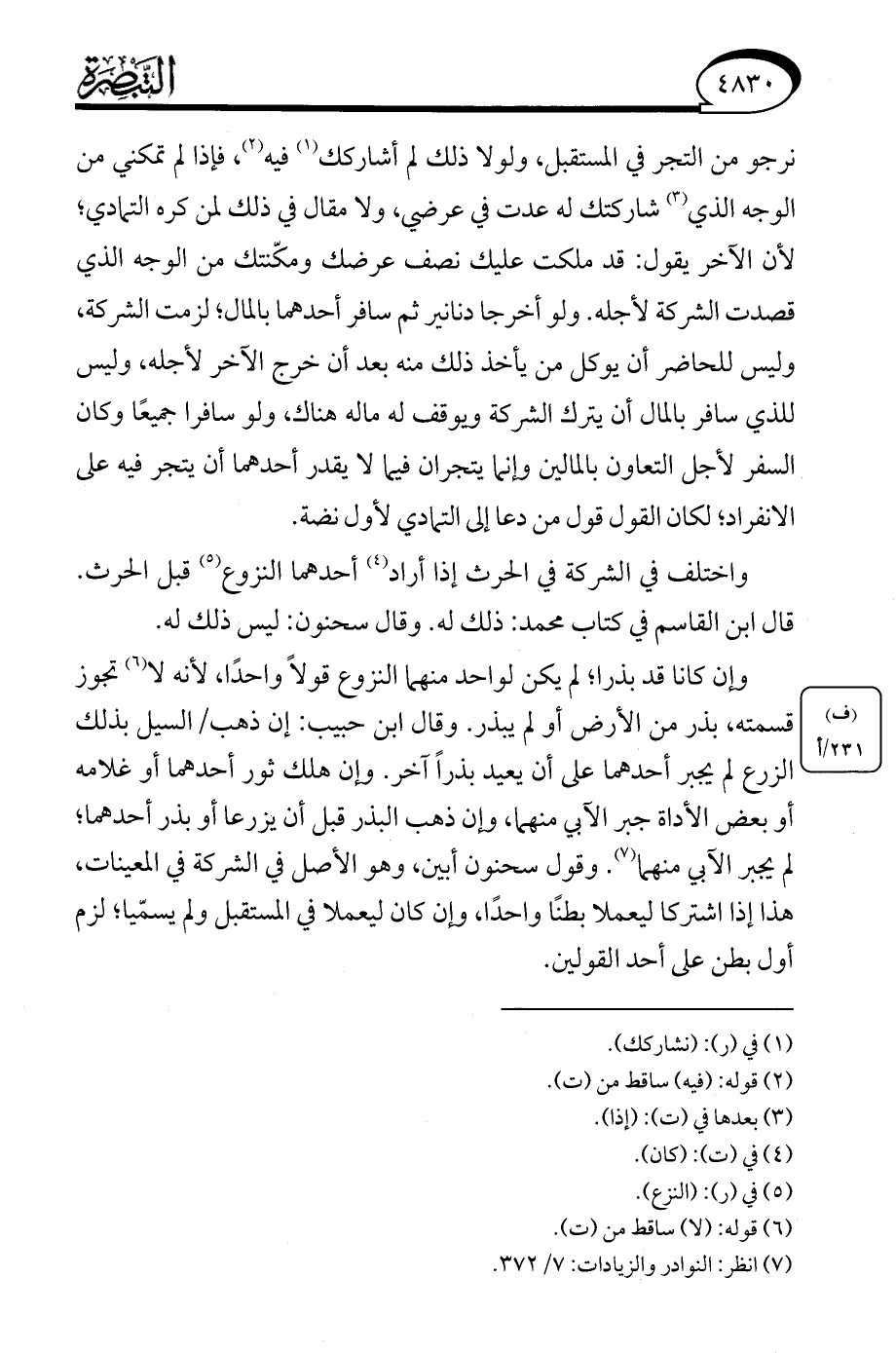 (¬7) انظر: النوادر والزيادات: 7/ 372.