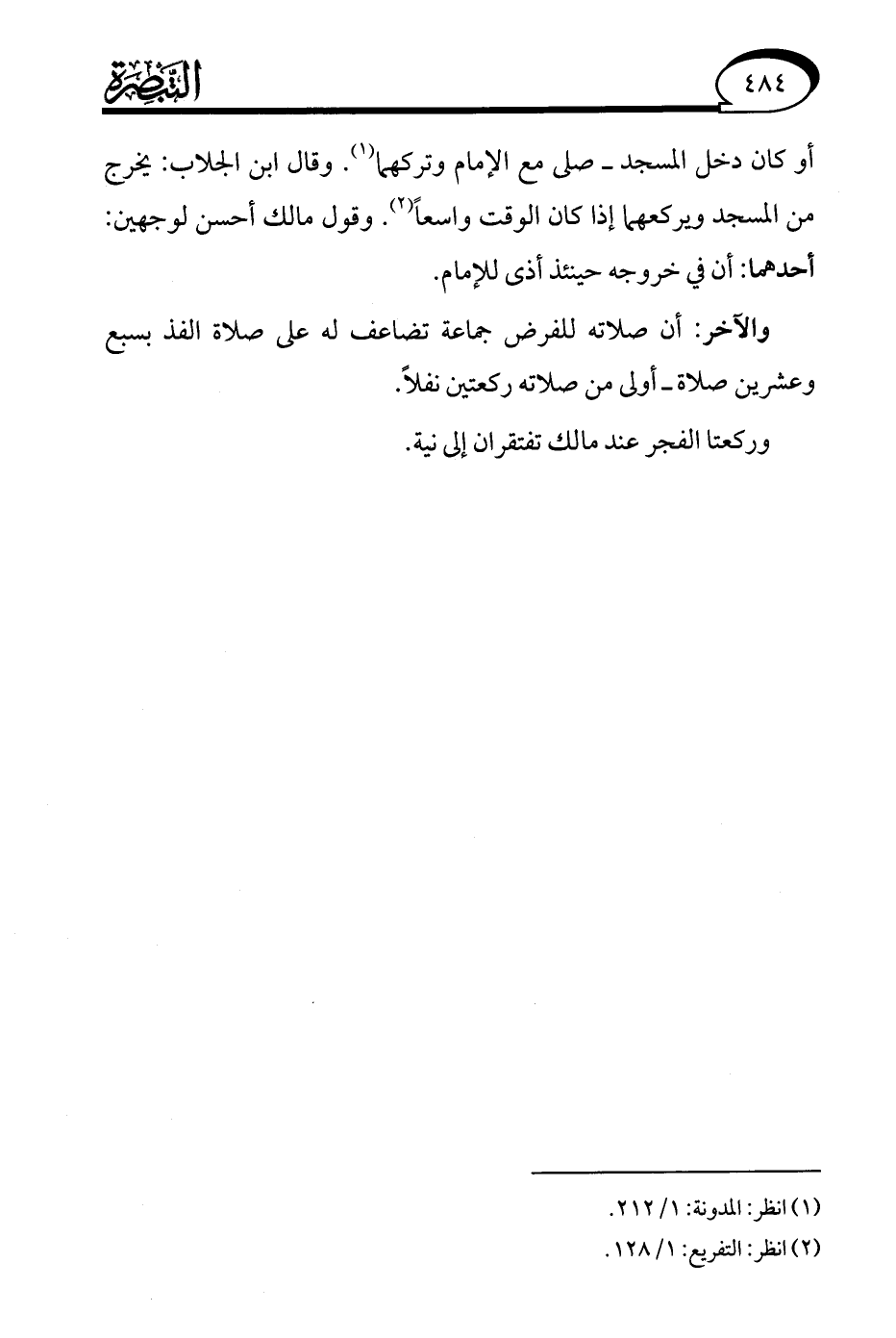 وركعتا الفجر عند مالك تفتقران إلى نية.