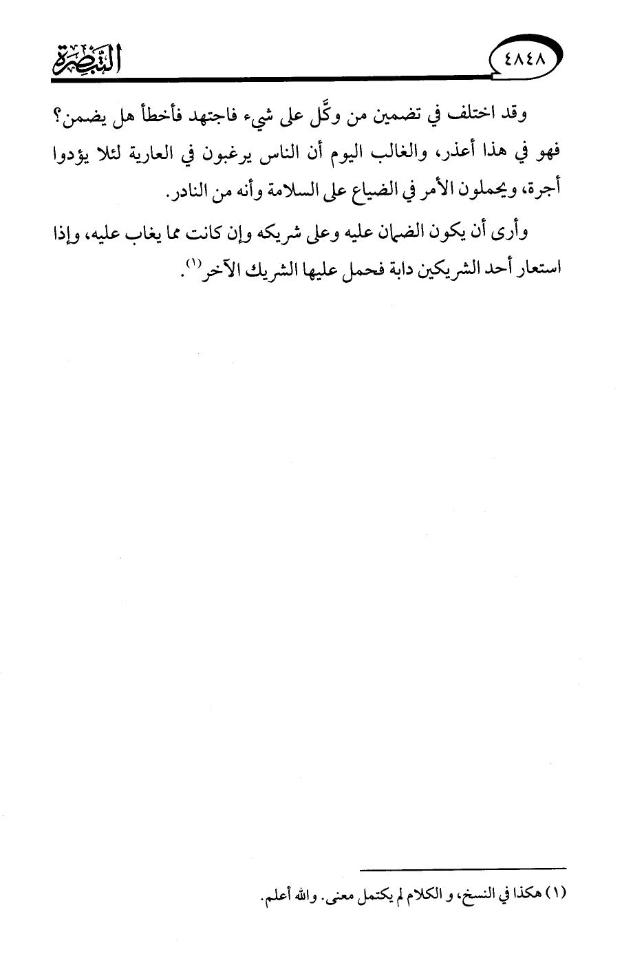 (¬1) هكذا في النسخ، والكلام لم يكتمل معنى. والله أعلم.